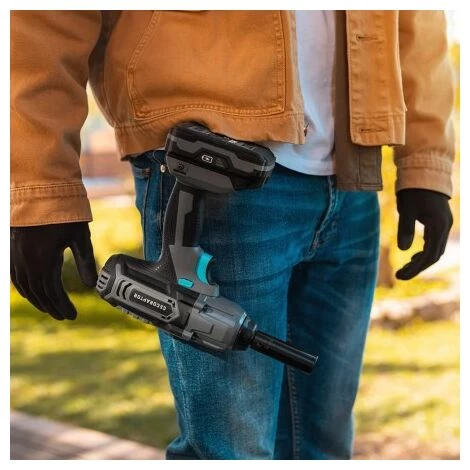 Llave de impacto sin cables, con batería de 20 V y 2000 mAh. Con una velocidad sin carga de 2300 rpm, un ratio de impacto de 3000 rpm, torque máximo de 400 Nm, portabrocas cuadrado de 1/2 „, luz de trabajo y autonomía de hasta 40 min.