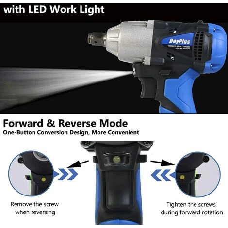 * Hochwertiger Motor, kleines Volumen, 420 Nm hohes Drehmoment. * Die Gummihand macht es bequemer. * Der gesamte Aluminiumkopf, langlebig, gute Dichtwirkung; Rotationswelle aus Wolframstahl, Schlagfestigkeit; Ergonomischer Softgrip-Griff und integriertes LED-Arbeitslicht, schön und langlebig. * Drehmomenteinstellung über zwei Gänge mit 90-Minuten-Schnellladegerät und 6,0-Ah-Li-Ion-Akkus mit Kapazitätsanzeige sorgen für eine längere Betriebsdauer.