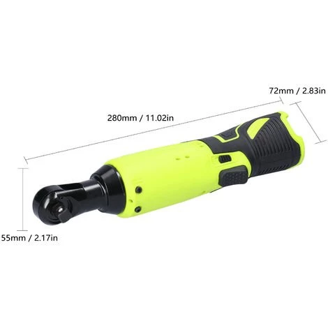 Dieser Ratschenschlüssel übernimmt Bürstenmotor, Schnellstart, rechtzeitiges Bremsen, stufenlose Geschwindigkeitsregulierung in einem weiten Bereich, relativ einfache Steuerung der Schaltung und so weiter. Rotationswege einstellbar, justieren Sie einfach den Knopf auf dem Metallteil, drehen Sie den Knopf im Uhrzeigersinn und die Stange dreht sich gegen den Uhrzeigersinn; Drehen Sie den Knopf gegen den Uhrzeigersinn und die Stange dreht sich im Uhrzeigersinn. Das rechtwinklige 90°-Design macht es perfekt für Arbeiten in engen und dunklen Räumen und eignet sich für Bauarbeiten, Autoreparaturen und sogar Reparaturarbeiten zu Hause.