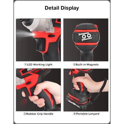 ● 18V 2.0AH Lithium-Ionen-Akku mit großer Kapazität. Unterstützen Sie überlegene lange Arbeitszeit