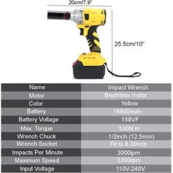 INSMA Schraubenschlüssel Schlagschrauber Bürstenloser Akkuschrauber 520Nm Pr 18V Makita Batterie