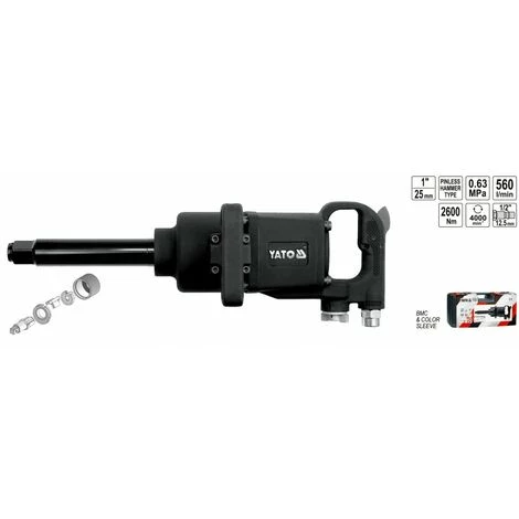 - Einer der leichtesten (13 kg) 1″ Druckluft Schlagschrauber mit einem Drehmoment von 2600 Nm.
